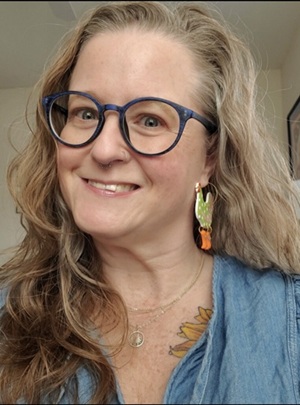 …..Sue also had fine aesthetic sensibilities when it came to her clothing and jewelry. Whether it was a Black Crowes T-Shirt, a beautiful knit sweater, or a funky dress with cow patterns, she chose her outfits carefully and they looked just right on her. Same with her earrings, rings, bracelets, and hair accessories. She wore nose rings and had ample, expressive body ink depicting images like wildflowers and striking-looking insects and, naturally, her children. With her pretty green eyes and flowing blond hair and all her nice clothes and rings and bracelets and her tattoos that burst with color and feeling, she emanated that she was a sensual woman. I called her my goddess.